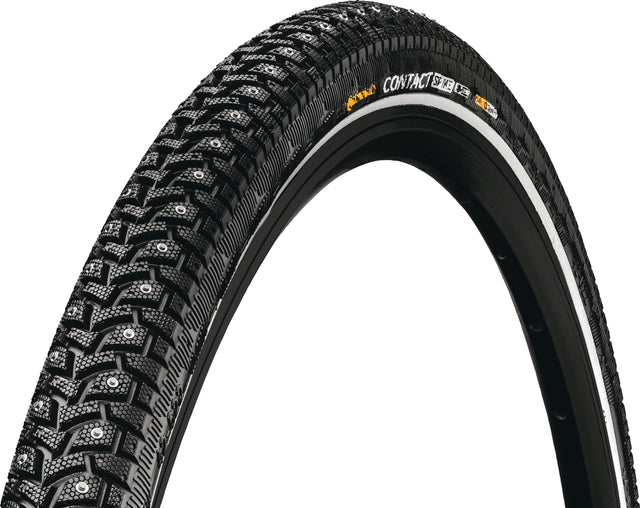 Le Continental Contact Spike 240 vous garantit une sécurité absolue pour la saison froide et sombre, car ses clous assurent une adhérence au sol et un contrôle total de la conduite même sur des surfaces glacées. Particulièrement dans les virages et lors du freinage, le risque de chute est considérablement réduit. Le renfort en nylon intégré offre une protection fiable contre les crevaisons, notamment contre le gravier coupant fréquemment utilisé, et la bande réfléchissante assure la sécurité grâce à une meilleure visibilité.