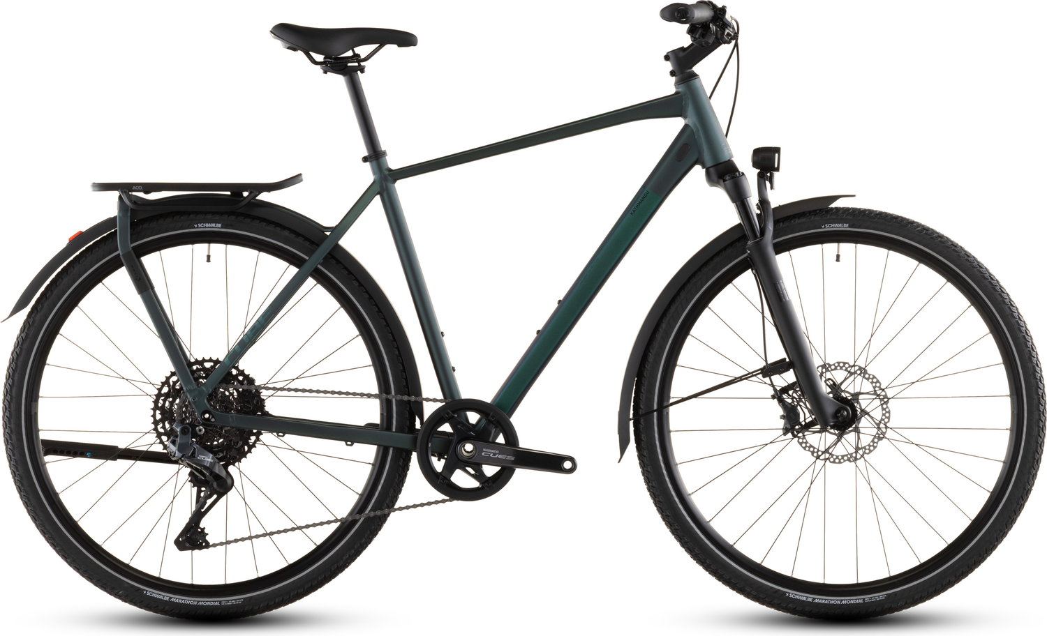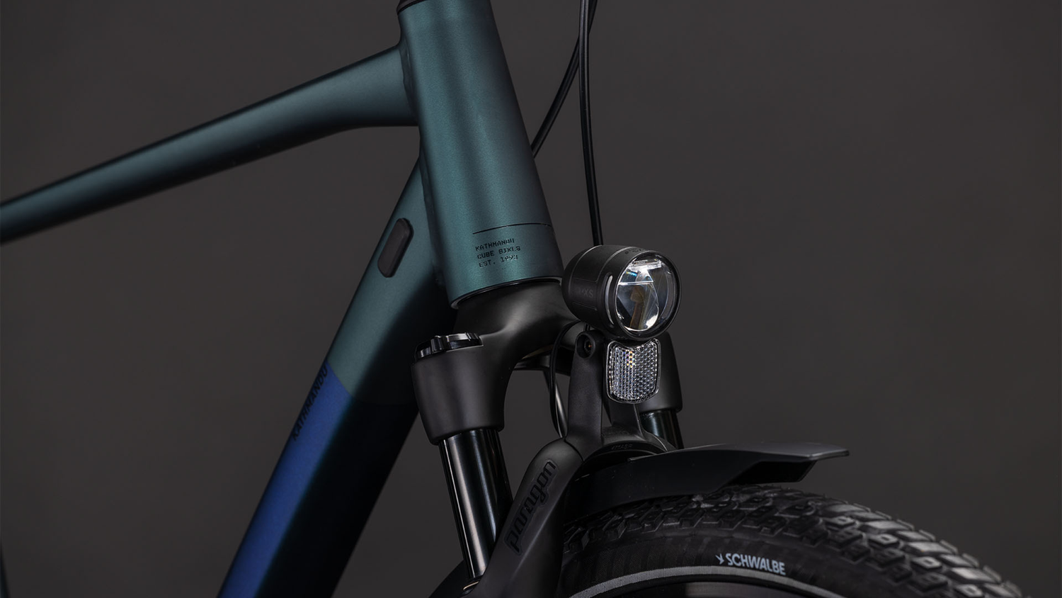 La liberté ultime sur deux roues : lors du développement du CUBE Kathmandu SLT, nous avons une fois de plus accordé un soin incroyable aux moindres détails. Ce tourer offre non seulement un confort exceptionnel grâce à sa fourche à suspension pneumatique RockShox Paragon Gold, douce et amortissante. Il séduit également par son apparence élégante, grâce au porte-bagages intégré et robuste IC 3.0. À cela s’ajoutent des fonctionnalités très pratiques telles que les garde-boue ACID, les éclairages et une béquille latérale. Les puissants freins à disque hydrauliques Shimano Cues assurent un arrêt fiable par tous les temps, grâce aux pneus Schwalbe Marathon Mondial, roulants et adhérents. Cerise sur le gâteau, un système de transmission électronique Shimano Cues Di2 Q'Auto 11 vitesses avec dynamo sur la roue arrière accompagne la balade, changeant automatiquement de vitesse pour toujours être dans le bon rapport. Il ne reste plus qu’à enfourcher le vélo et profiter !