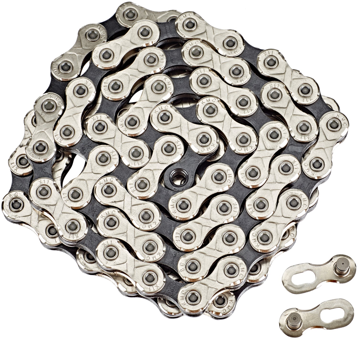 Nahezu alle KMC Ketten werden mit einem Kettenschloss geliefert. Die Montage ist ganz einfach und eine sichere Verbindung gewährleistet. Um die Kette auf die richtige Länge zu kürzen benötigt man lediglich einen handelsüblichen Kettennietdrücker. Für das Verschließen und Öffnen benötigt man eine Kettenzange.
