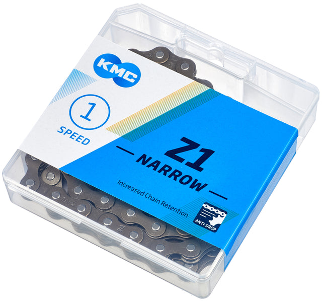 Die KMC Z1 Narrow Kette ist für BMX-, Bahn- & Fixed Gear Bikes entwickelt worden, hat eine braune, stylische Oberfläche und ist mit dem "No Drop" Feature ausgestattet. Die Kette ist außerdem nicht Laufrichtungsgebunden.
