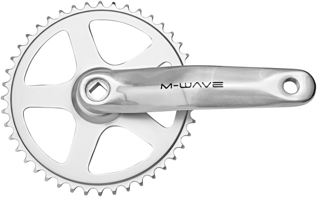 Die M-Wave Kurbelgarnitur besticht durch ihre robuste Konstruktion aus Aluminium-Kurbeln und stahlverstärktem Kettenblatt. Mit 44 Zähnen und 170 mm Kurbellänge bietet sie optimale Kraftübertragung für Single-Speed-Systeme. Die JIS-Vierkantachse mit 131 mm Länge gewährleistet sichere Montage auf Standard-Innenlager. Kompatibel mit 1/2" x 3/32"-Ketten, wiegt die Garnitur nur 745 g und eignet sich ideal für Alltags- und Freizeitfahrräder mit minimalistischem Antriebsstrang.