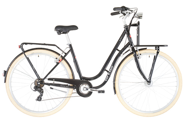 Les vitesses éprouvées Shimano Tourney à six vitesses vous aident à varier votre rythme et à trouver le rapport adapté à chaque situation en ville, ce qui est particulièrement important lorsque vous avez beaucoup de chargement chargé sur les porte-bagages avant et arrière. Ce vélo n'est pas seulement beau, il peut également vous permettre de faire vos courses en ville.